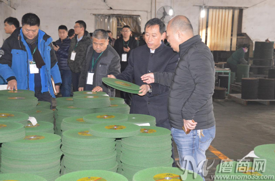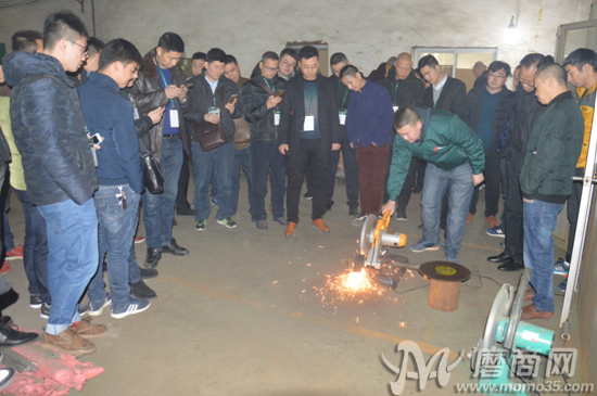 2017年12月11日上午,参加会议的代理商们陆续抵达盛森磨具工厂,并在盛森磨具董事长许群英的带领下分别参观两个厂区。车间内,许群英向各代理商伙伴展示了公司最新的切片产品。据悉,盛森磨具于今年成功研发出三代不锈钢切割片,无论是从产品的切削力度还是耐磨性,都较传统切片有了更大的提升和突破。为了更直观地向来访的各位代理商伙伴们展示产品在实际操作过程中的使用情况,盛森磨具技术人员在车间内为大家进行产品的现场切削演示。